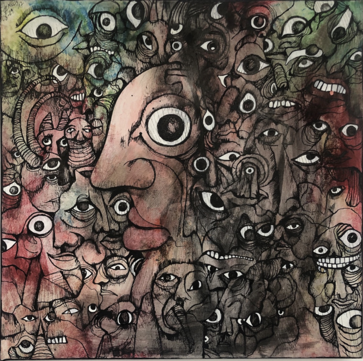 Éric DEMELIS est né le 27 décembre 1974 à Annecy. Il vit et travaille à Grenoble. Influencé par Pieter Brueghel, Jérôme Bosch, l’art brut et le monde de la BD. Univers saturés, foisonnement de la figure, fantasmes, angoisses, omniprésence de l’œil qui contemple le spectateur : mise en abyme. Support et technique privilégiés : encre de Chine sur papier. Première exposition personnelle en février 2013 à la galerie grenobloise Alter-Art.